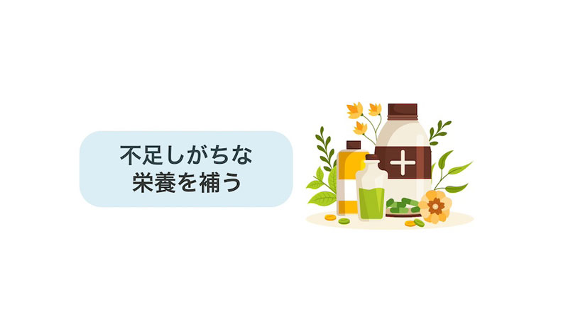食事だけでは不足しがちな栄養素を、サプリメントを利用することで効率的に補給できます。